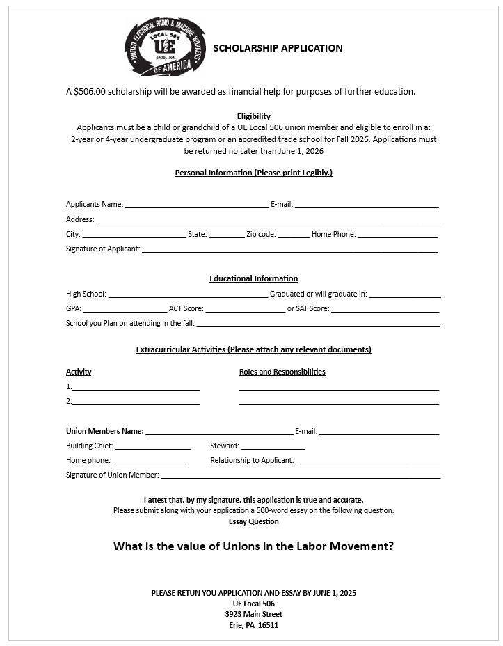 2026 UE 506 Scholarship Opportunities The Website below is for the Wabtec Foundation Scholarship for 2026 https://scholarshipamerica.org/scholarship/wabtec